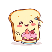 Capture your sweetest thoughts in this funny bread notebook! This notebook features a smiling bread slice happily frosting a tiny cake, perfect for recipes.